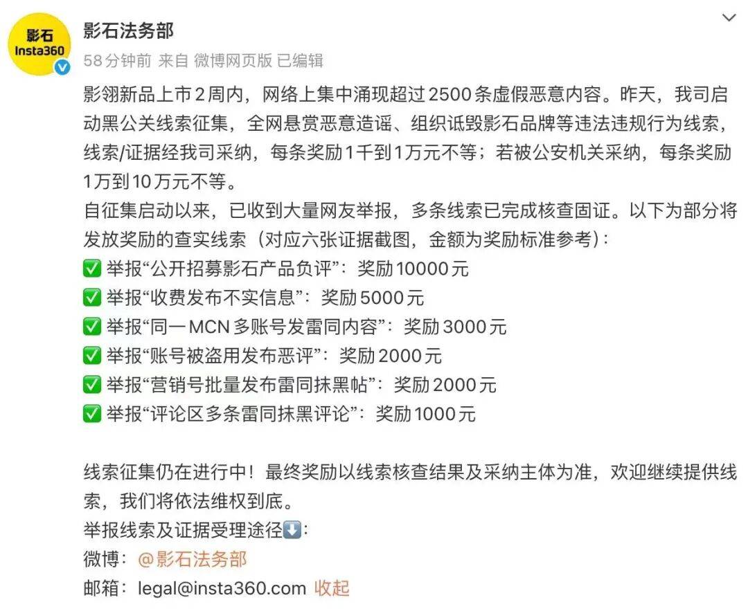 这些功能将面向第三方电视、智妙手表取测试,并打算正在2026年于欧洲全面可用。按照汗青发布节拍猜测,苹果估计正在1月底发布 iOS 26。3 的正式版本。上述改动或仅合用于欧盟范畴内的设备厂商及 iPhone、iPad 用户。12月23日,影石法务部晒出网友举报的水军线索:一推广众包平台打着 “品牌种草” 的表面发布付费招募布告,明细中却明白标注 “产物负面评价内容推广”,发布一条相关内容的稿费最高达2000元,目前已有超1000人报名。针对此类恶意、组织品牌的违法违规行为,影石法务部倡议全网,公开搜集相关线索,若线索被机关采纳,最高可赐与10万元励。